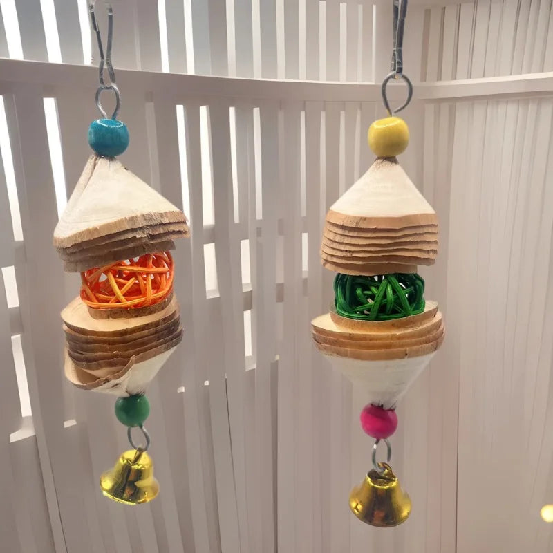 Este juguete de madera para loros de MOONBIFFY está diseñado para estimular el instinto natural de masticar y picotear, ayudando a mantener a tu ave activa, entretenida y libre de estrés. Sus tiras coloridas y desmenuzables ofrecen una experiencia interactiva que evita el aburrimiento dentro de la jaula. Ideal para loros pequeños, cotorras, periquitos y otras aves similares, este accesorio es duradero, seguro y perfecto para mejorar el bienestar de tus mascotas.